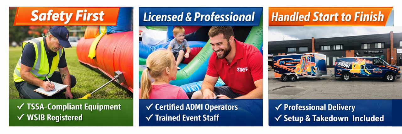 Party Time Inflatables provides commercial-grade inflatable rentals and interactive amusements for Carleton Place events, including private parties, schools, community events, and corporate functions.